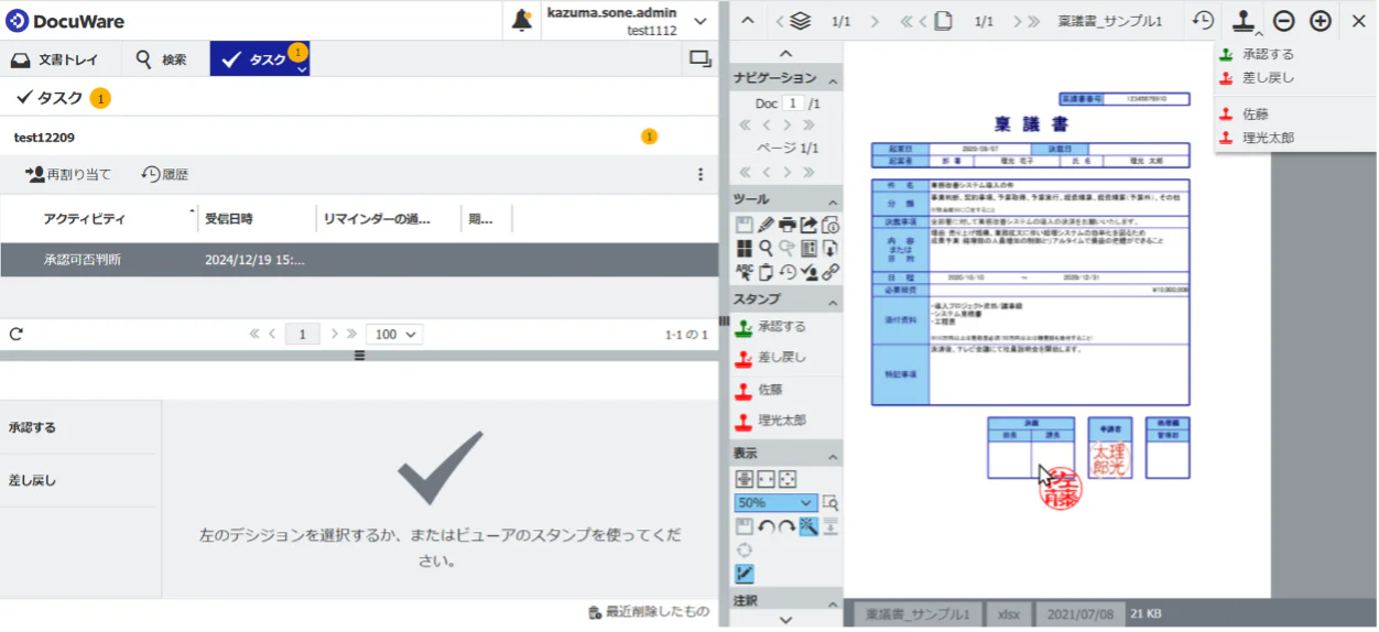 実際の稟議書に捺印するように直感的に使えるDocuware
