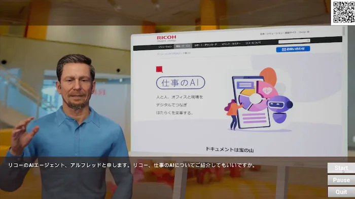 AIエージェント(ここではリコーのバーチャルヒューマンのようなAIを活用して受け答えをするものを指す)が体系化した情報を持っていなくても、人間というのはおもしろいもので、自分の知識とつなげて体系化して捉えます。そういう意味での拡張性がかなりありそうですね。