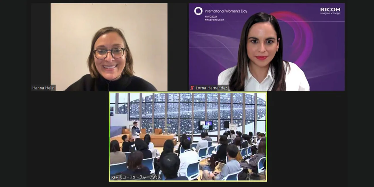私が一番思い入れがあるのが、この国際女性デーの活動です。リコーでは2017年から国際女性デー(3月8日)を祝うようになり、現在ではその月を通してイベントを行っています。最初のきっかけは、リコーラテンアメリカのパートナー企業で開催された国際女性デーイベントへの参加でした。その活動に大きな刺激を受けた私は、このようなイベントをリコーでも実施したいと考え、その意義やポジティブな効果を提案しようと決意しました。