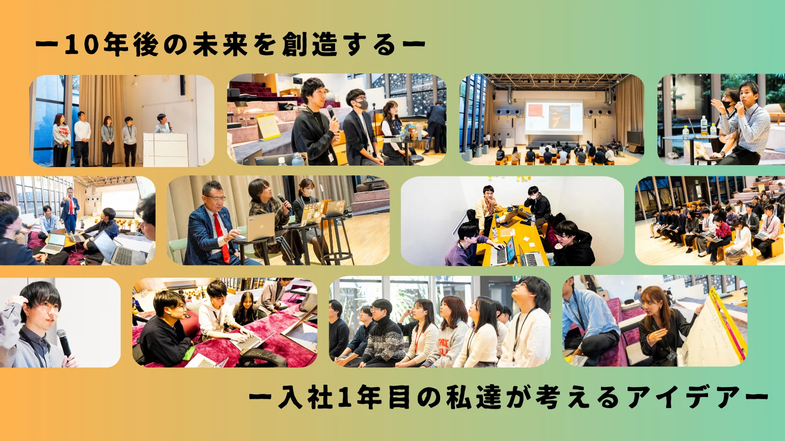 当日は入社1年目社員がグループに分かれ、リコーの歴史や価値観、提供価値を通じた強みを改めて学びながら、10年後のリコーの姿を自由に描き、企画としてまとめました。インプットだけで終わらせず、「自分たちが未来をつくる当事者である」という意識を持ってもらう設計が特徴です。