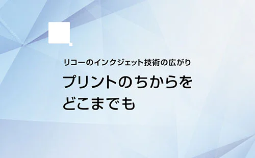 リコーのコア技術を、新たなイノベーションへ。リコーはプリントの可能性を広げ、よりよい社会づくりへ貢献していきます。
