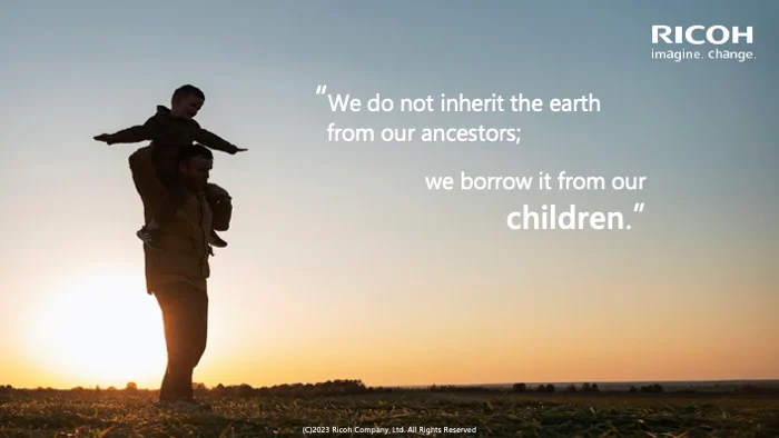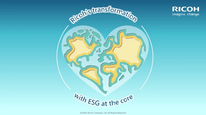 リコーでは、全社をあげてESGに取り組んでいます。リコーというと、世界約200の国と地域に8万人以上の社員を擁するプリンターのトップメーカーとしてご認識頂いている方々もいらっしゃるかもしれませんが、リコーは今ではデジタルサービスのグローバル企業へと成長を遂げています。この大きな変革の過程において、私たちは常にESGをアプローチの中心に据えてきました。