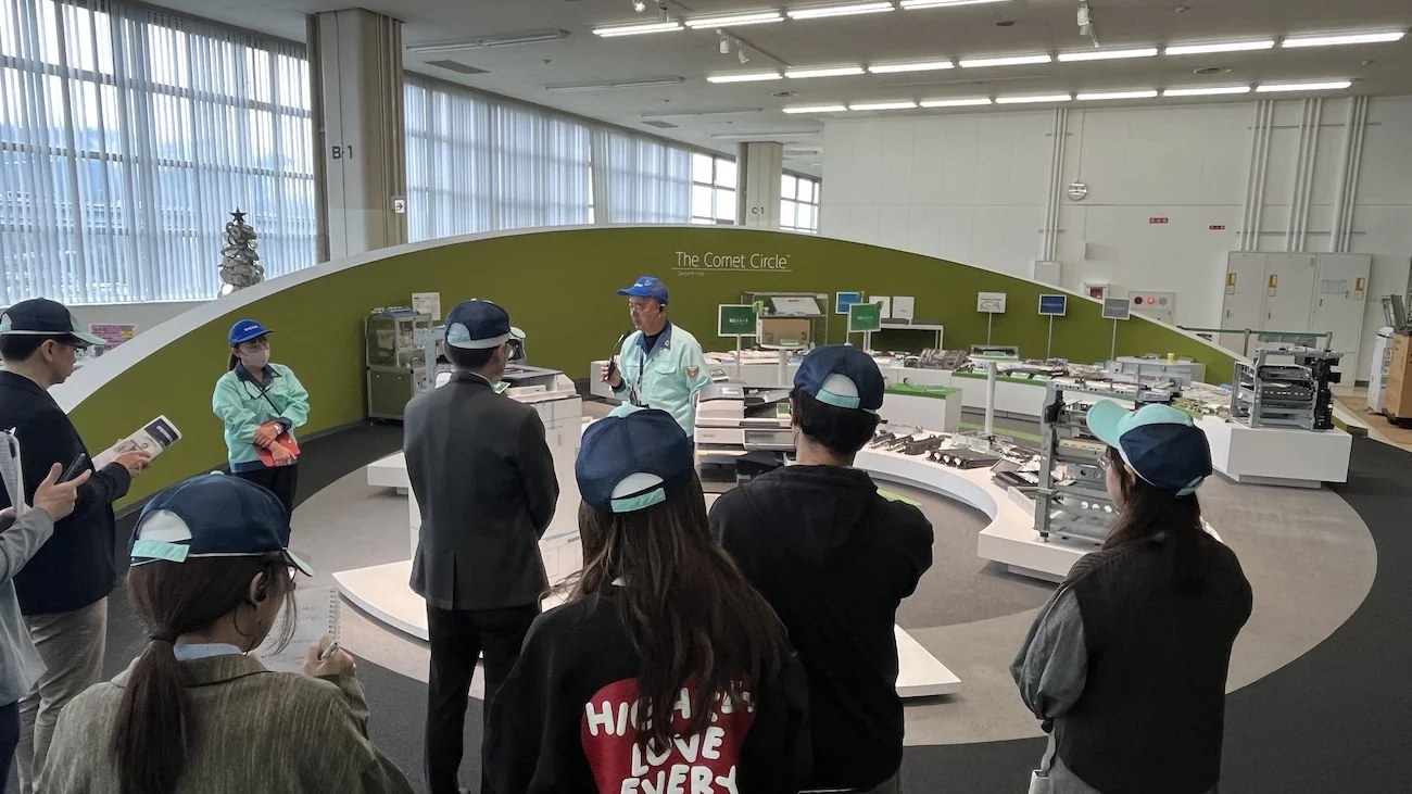 御殿場ワーケーションは、リコーの環境事業開発センターを訪問し、複写機のリサイクルや脱炭素・循環型社会に向けた実証実験の現場を実際に見て、リコーの環境経営への取り組みを体感することをメインプログラムとして企画された。幅広い年齢層の、様々な職種の社員10名が参加した。