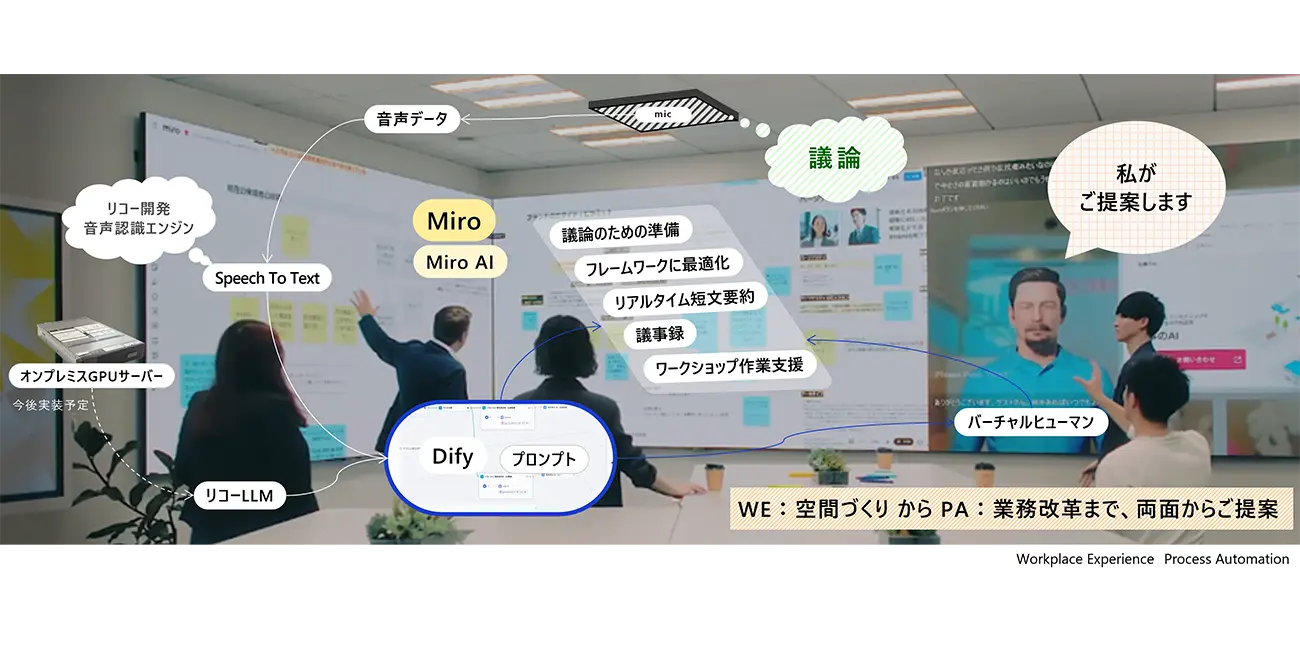 本ワークショップルームは、RICOH BIL TOKYOにお越しいただいたお客様がご利用いただけるほか、社内での実践を通じて価値の検証を進めています。今後は、ワークショップや会議のキーパーソンであるファシリテーターを支援するAIエージェントの導入や新機能の追加、お客様の環境への導入も検討してまいります。
