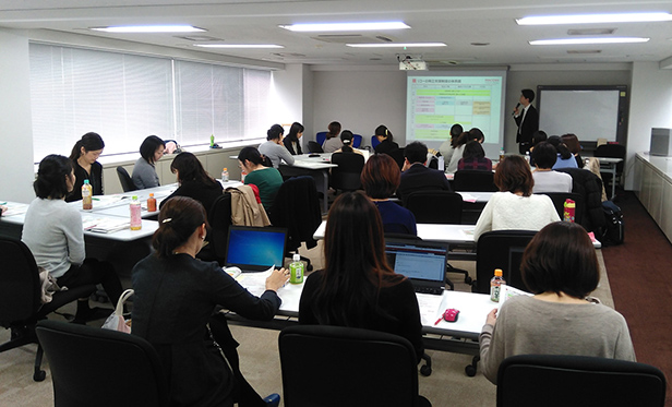 毎年、復職支援セミナー(育児)、介護セミナーを開催し、対象者が利用できる会社の支援制度や人事上の処遇等について解説しています。復職支援セミナーでは、先輩社員による育児と仕事の両立に関する “体験談” 、グループディスカッションを通じた参加者同士の情報共有などを行い、大変好評なセミナーとなっています。