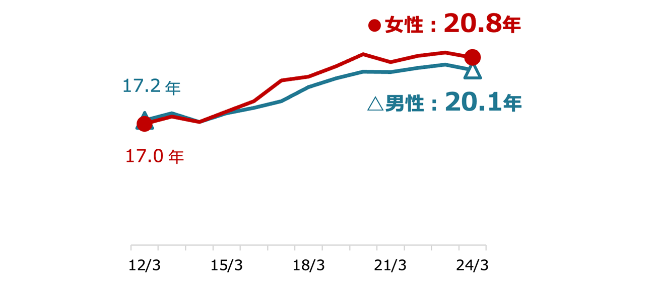 | 男性 | 17.2 | 17.6 | 17.1 | 17.6 | 17.9 | 18.3 | 19.1 | 19.6 | 20.0 | 20.0 | 20.2 | 20.4 | 20.1 |