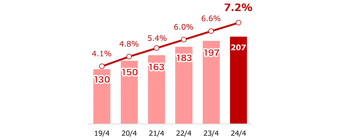 | ⼥性管理職⼈数 | 130 | 150 | 163 | 183 | 197 | 207 |
