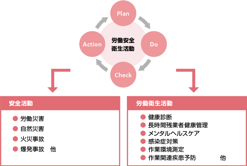 「経営理念」の実践を通じて、従業員の安全と健康の確保、並びに快適な職場環境の形成を強く認識し、グループを挙げて、その実現に取り組む。