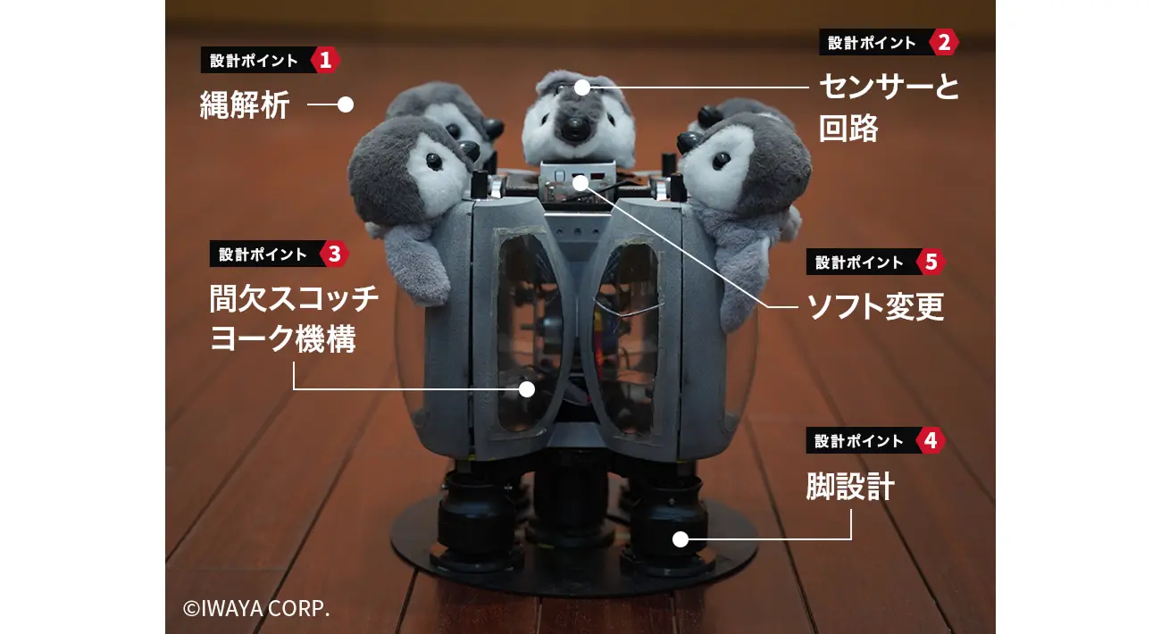 素早く・数多く縄を跳ぶという機能を実現するために、縄の挙動を徹底的に解析し、ばらつきを極限まで抑えた縄回しの条件とペンギンの要求仕様を導き出した。