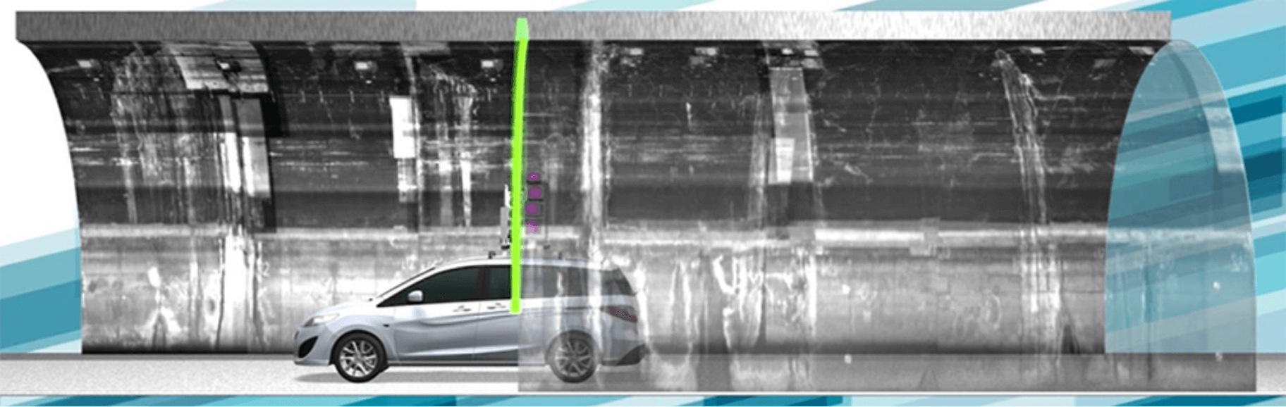 トンネルの点検を実施する場合、従来の点検方法では交通規制をしたうえで高所作業車を利用し目視で確認を行なうため、作業が危険かつ手間がかかっていました。また、「走行型」専用車両での計測も始まっていますが、費用面などの課題があります。