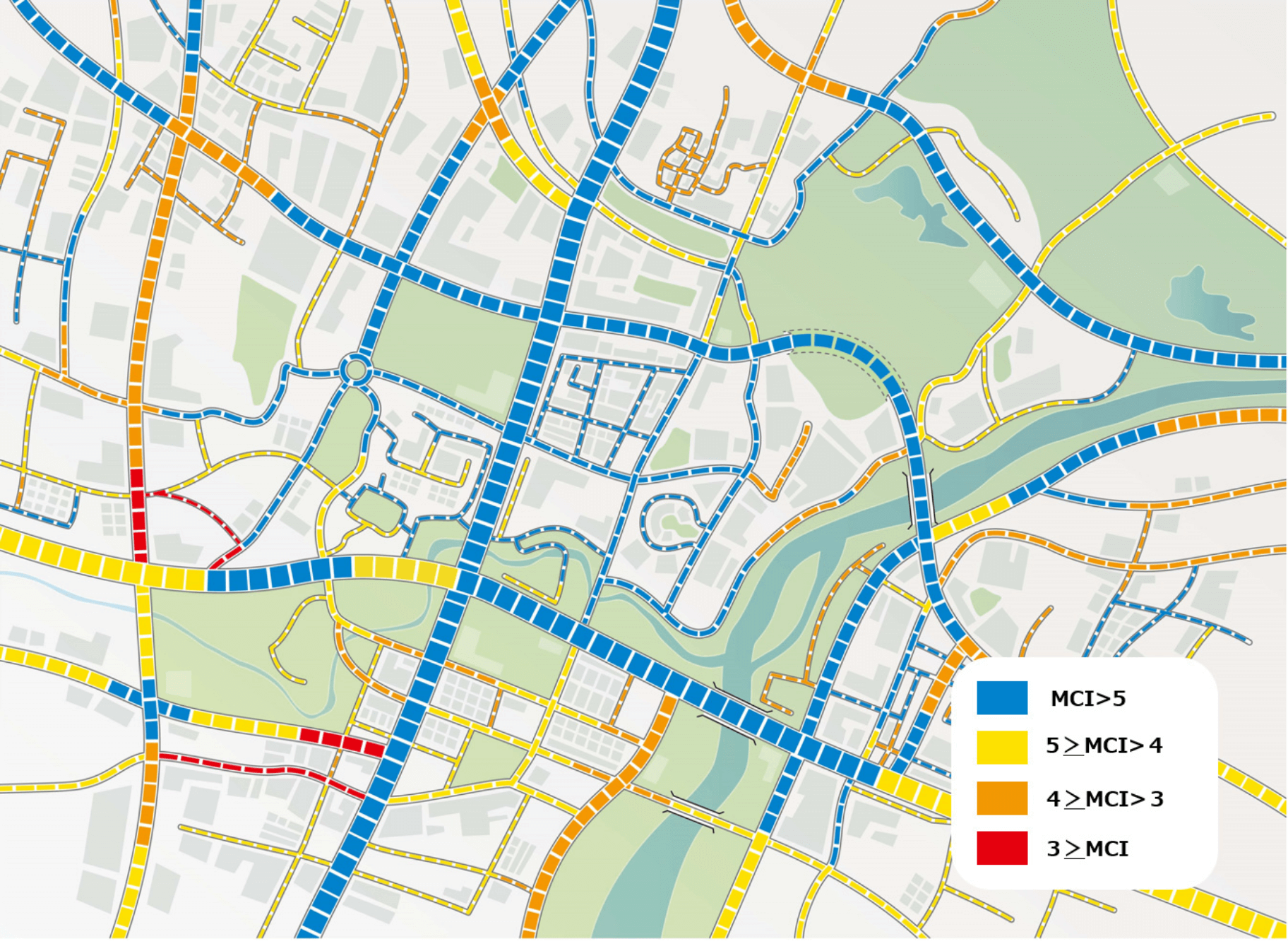取得した道路の3要素から、維持修繕判断のための総合的な指標である「MCI(Maintenance Control Index)値」を算出し、調書作成を支援します。