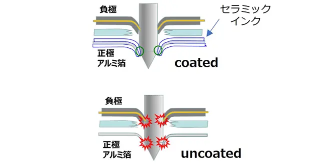 外部からの衝撃等による異常発熱時にセラミックインクが抵抗層となり安全性向上