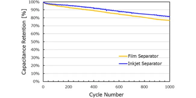 印刷セパレータ(開発品)のサイクル特性