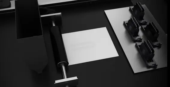 この工程を繰り返して立体形状を形成し、造形後にバインダーを付与していない部分の粉を取り除き、焼結炉で加熱することで、緻密な金属組織を持つ部品を作ることができます。